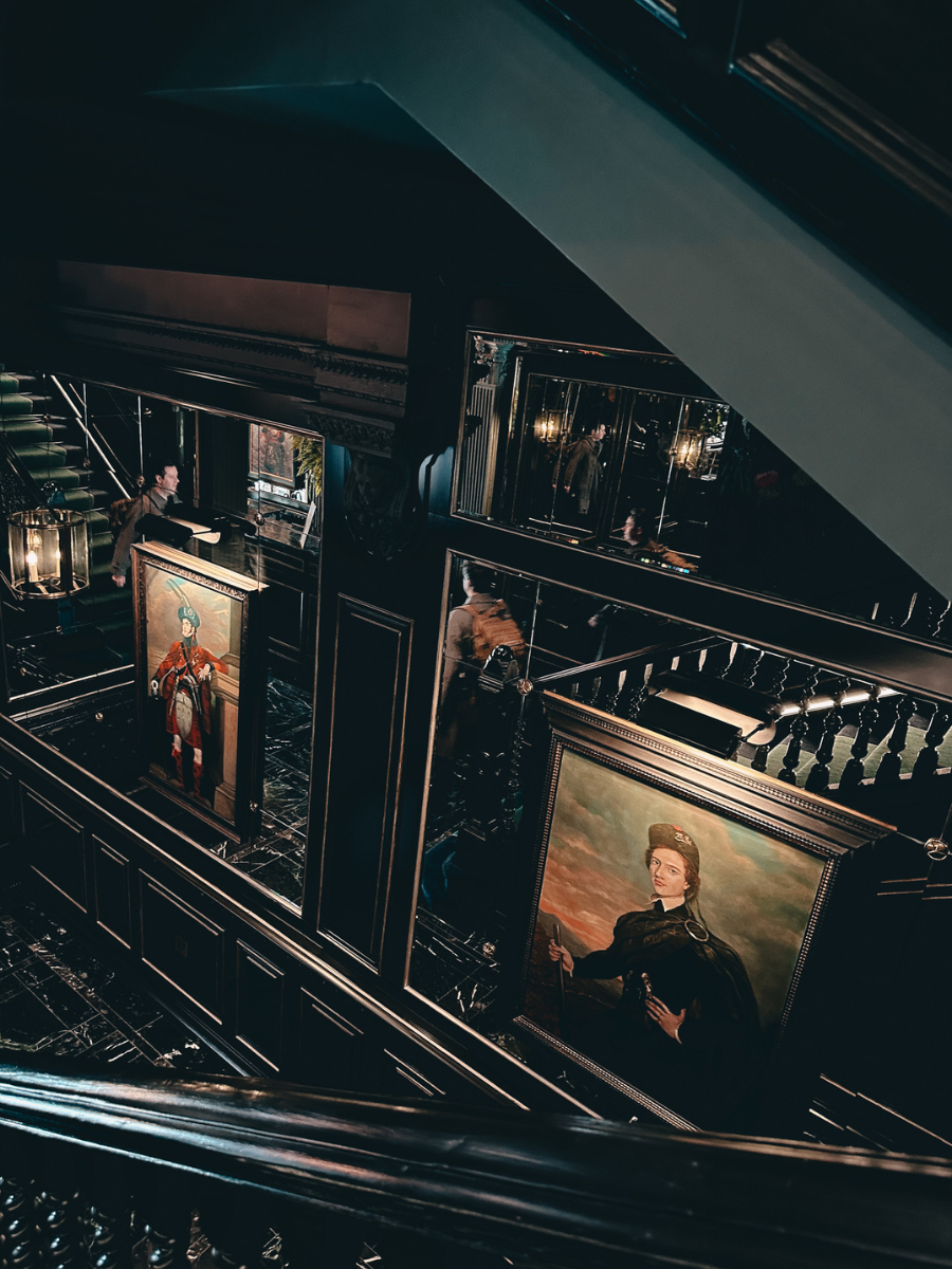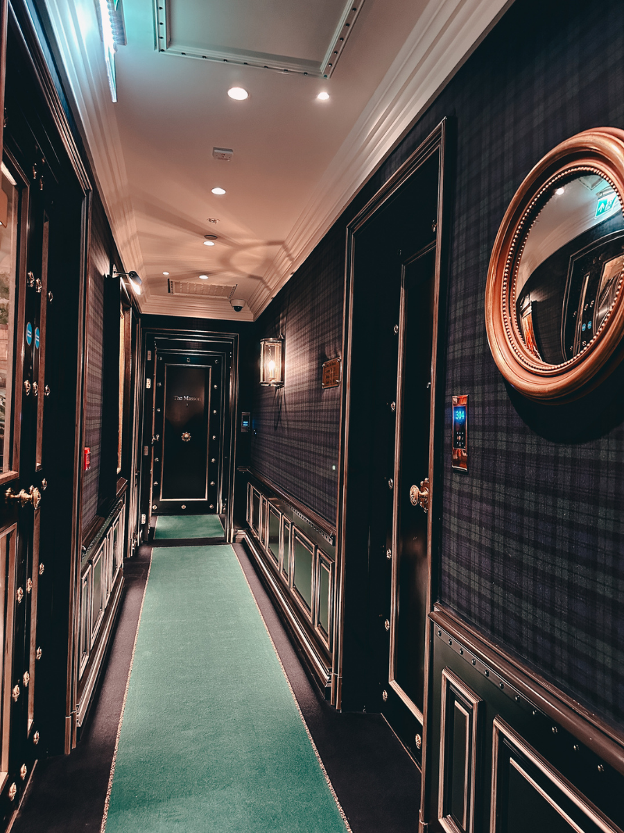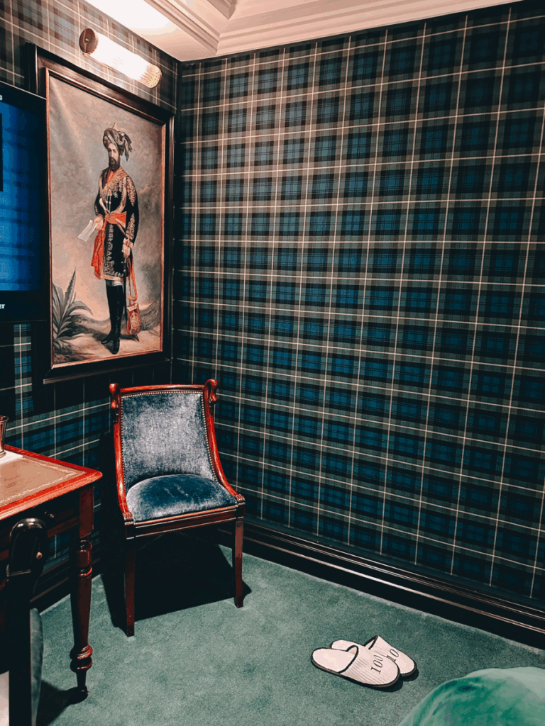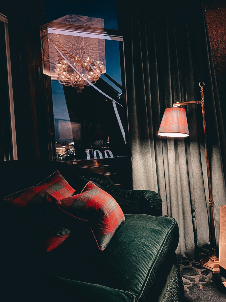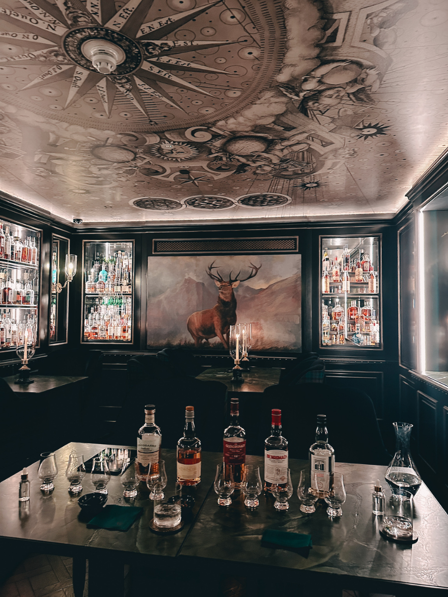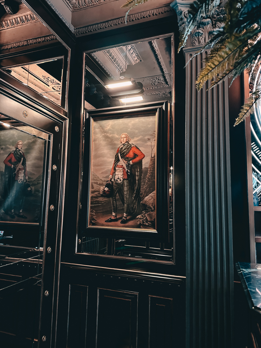 What makes 100 Princes Street unique is how intentional the entire experience feels. The design leans heavily into Scottish heritage, craftsmanship, and storytelling, with tartan-lined walls, rich textures, curated artwork, and dark, moody tones throughout.