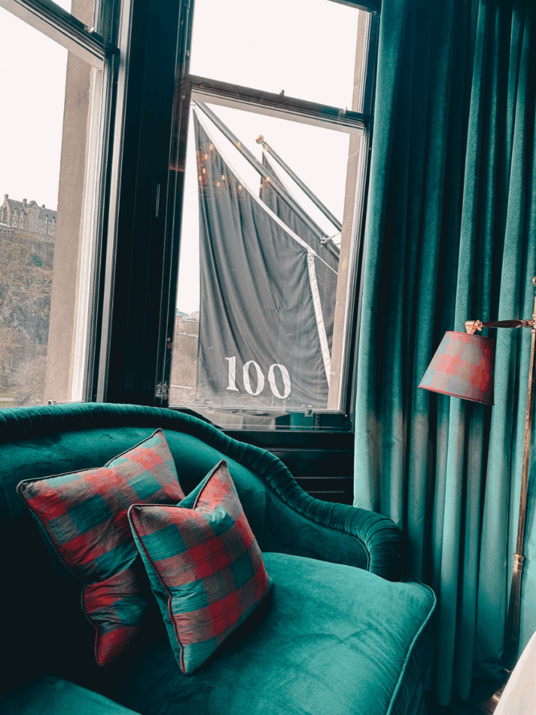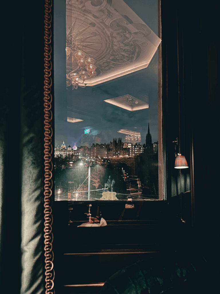 Despite its central location, the hotel felt remarkably quiet and secluded. Once inside, the city noise melted away, making it easy to relax, linger over a drink, and enjoy the castle views while taking in Edinburgh’s changing weather.