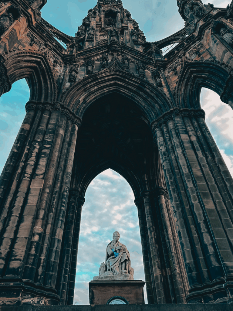 Nearby, the Scott Monument rises dramatically over the city. Even without climbing it, seeing it up close adds to Edinburgh’s gothic, storybook feel and makes walks through the city feel cinematic.