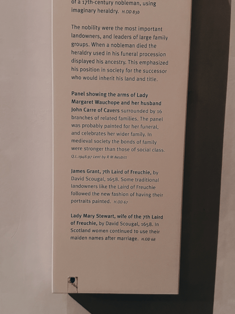 A personal highlight for me was seeing artwork connected to the Grant family, including a portrait of James Grant, 7th Laird of Freuchie — a fun and meaningful moment, since I’m related to the Grant family on my dad’s side. It added an unexpected layer of connection to Scotland’s history and made the museum visit feel even more special.