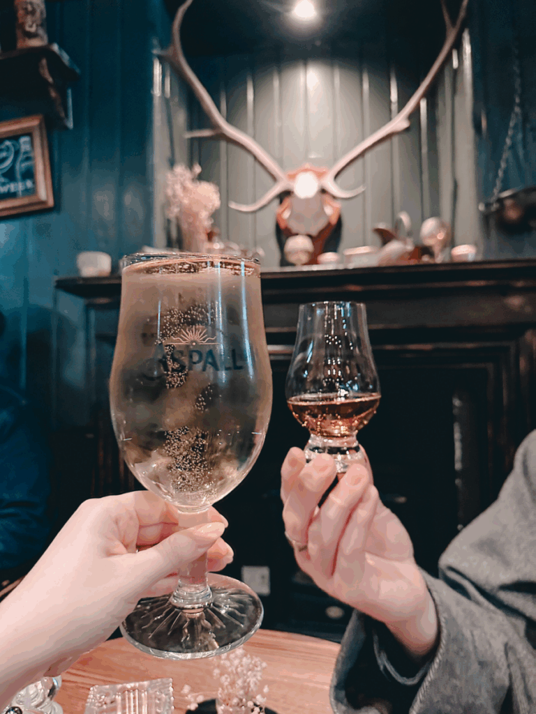 One of our favorite stops was Jinglin’ Geordie, a cozy whisky bar with a relaxed, intimate feel and an impressive selection. It was the kind of place where time slows down, making it easy to settle in and stay longer than planned.