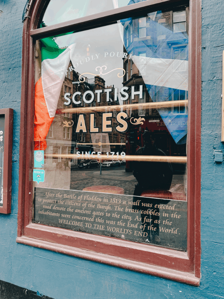 After visiting the famous dog statue, we also stopped into Greyfriars Bobby’s Bar, located right beside Greyfriars Kirkyard. Popping in after seeing Greyfriars Bobby felt like a natural continuation of the experience — warm, welcoming, and full of local character.